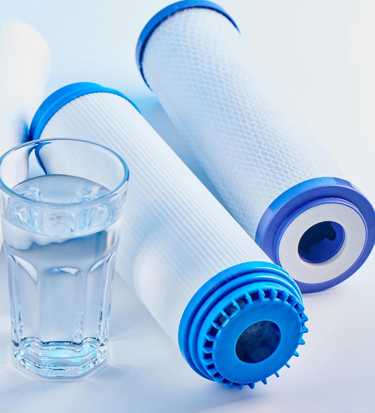 1.AŞAMA : Suyu 5 mikron (milimetrenin 200’de biri), seviyesine kadar filtre eder. Çamur, pas, asbest gibi tortuları arıtır. Suyu berrak bir hale getirir.